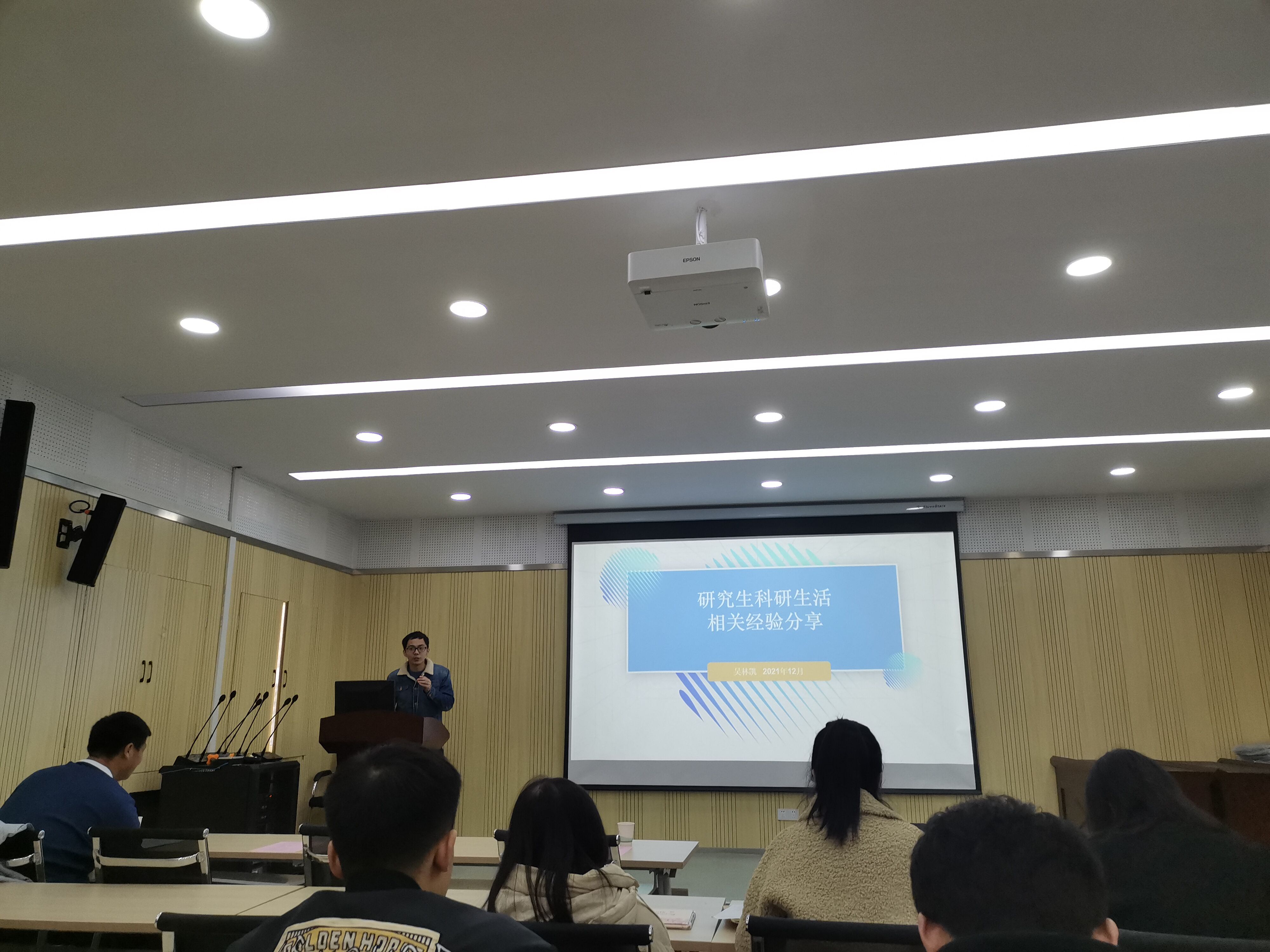 优秀论文颁奖典礼结束后,四位在学术论坛中脱颖而出的研究生分享了他们的研究与论文写作经验。19级外国语言文学研究生王莉从研究问题、文献综述、研究方法、研究结果和论文撰写五个方面阐述了“在线合作学习中学习者情绪变化及调解策略”的论文产出过程。20级外国语言文学研究生高梦珣也详细讲述了“多元反馈结合模式在MTI笔译教学中的应用研究”。20级外国语言文学研究生吴林凯就科研、员工工作和自我认识三方面与同学们交流了在武科大的生活。20级英语笔译研究生金鸣由“MTI笔译员工职业认同现状与影响因素研究”论文入手,谈及了论文写作个人经验及总结,同学们受益匪浅,感触良多。